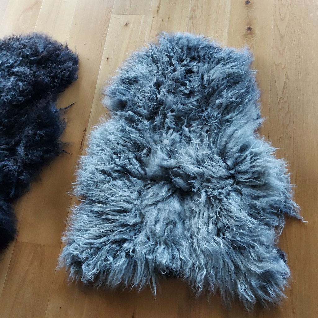 Alla skinn är unika och vi har priser från 1800 kr – 2800 kr beroende på skinnens storlek, lock, färg osv. Vi har också sittdynor till pallar/stolar och handledsvärmare.